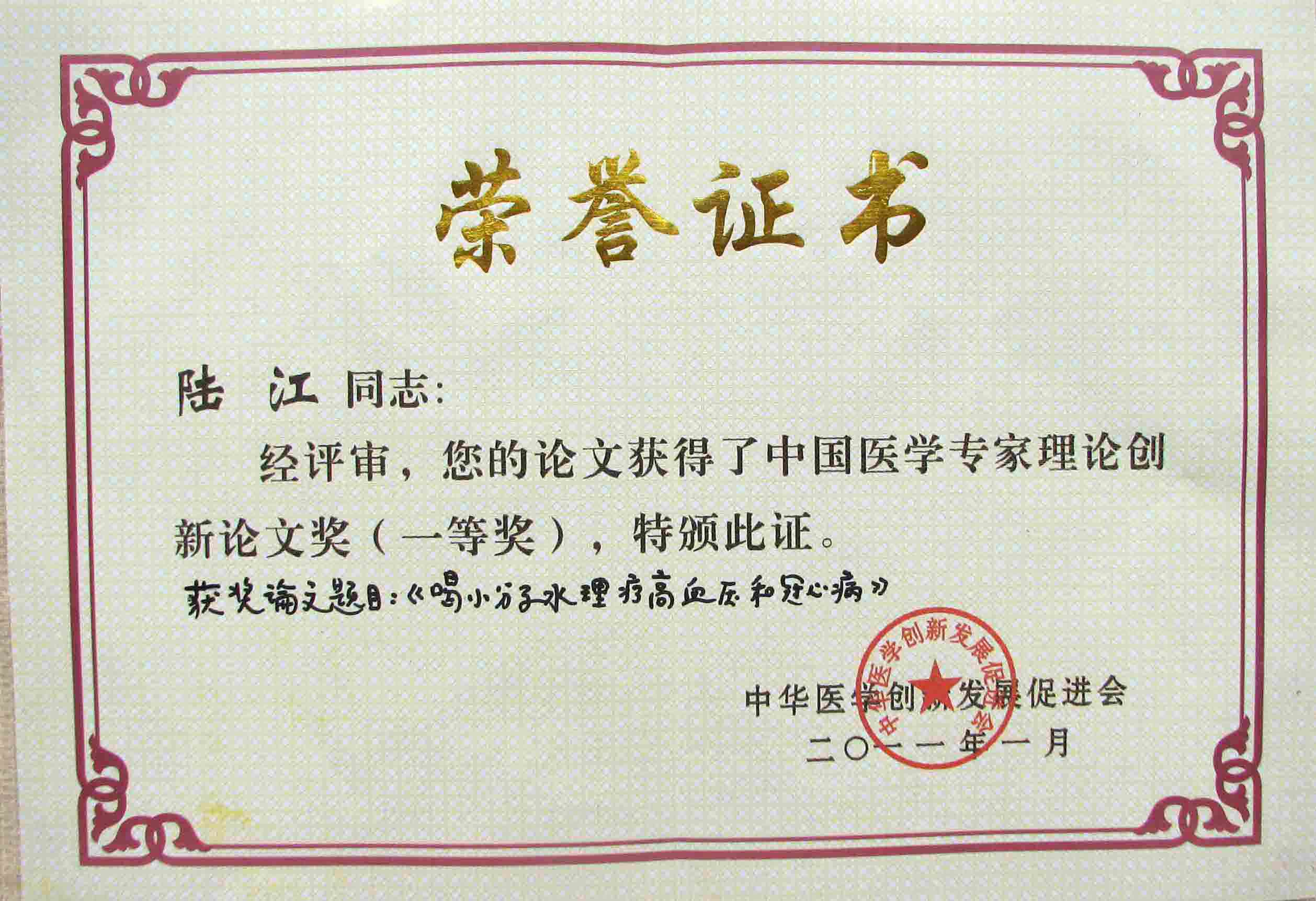 人類幾千年來患以上病癥需終生服藥,幾十年也不能治愈。可是我國南寧的高級工程師陸 江,于1990年想根治高血壓,研究發(fā)明了離子水瓶,處理出微小分子團水供飲用,經(jīng)過醫(yī)院臨床試用和專家鑒定,1999年獲中國發(fā)明專利權,產(chǎn)品于2000年投放市場后一直跟蹤調(diào)查,據(jù)全國各地用戶反饋:祛除了高低血壓、糖尿病和冠心病,并使前列腺增生、咽喉炎、鼻竇炎、慢性氣管炎、支氣管炎、矽肺病、哮喘、慢性胃炎、腸炎、慢性膽囊炎、慢性腎炎、腎衰、膀胱炎、便秘、痔瘡、風濕性關節(jié)炎和濕疹皮炎及中風后遺癥等病癥不藥而愈。為什么喝微小水能治20多種病?陸 江從1991年德國科學家發(fā)現(xiàn)細胞膜水通道僅為2納米獲得啟發(fā),認為多種器官患病是因細胞脫水,不能正常代謝和分裂增殖,才使器官細胞減少致衰弱萎縮而形成細胞缺水性病癥。22年來的實踐有力地支持了“細胞脫水致病”這一重要論點,表明喝微小水可滿足細胞的生理需求,補水就能祛病,是生命科學新亮點。