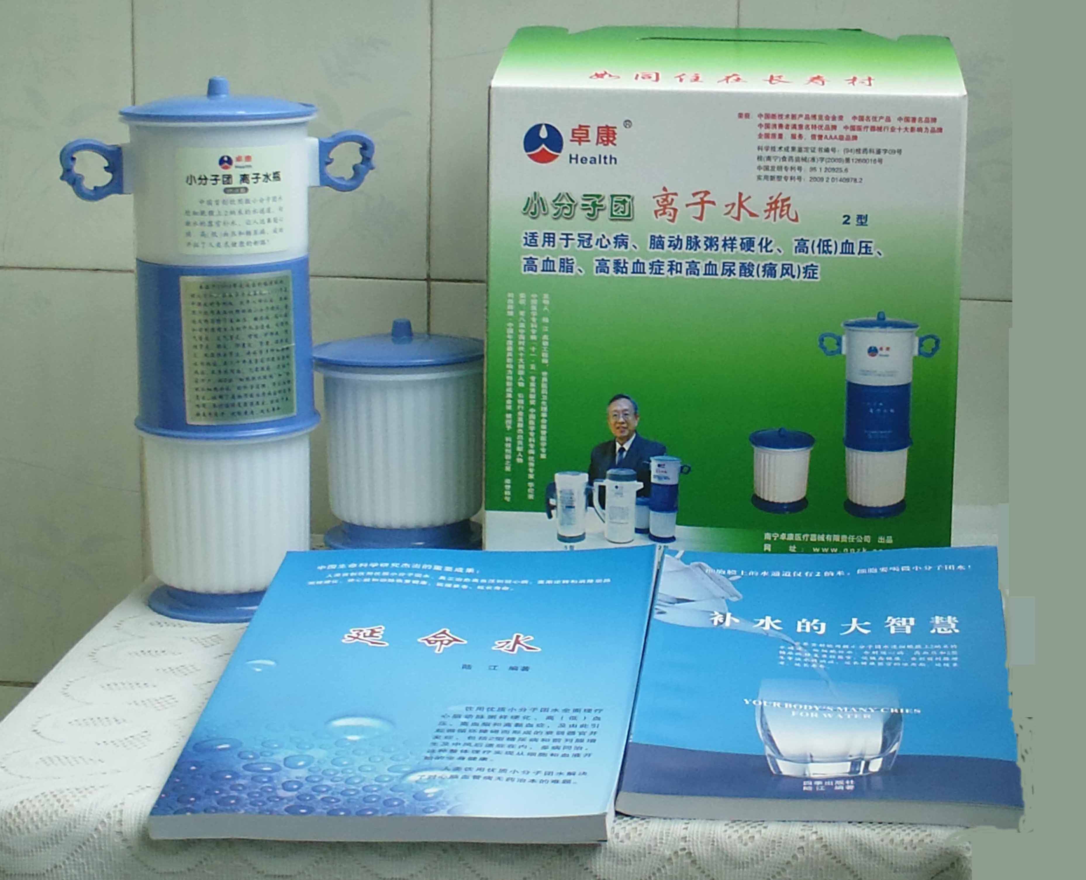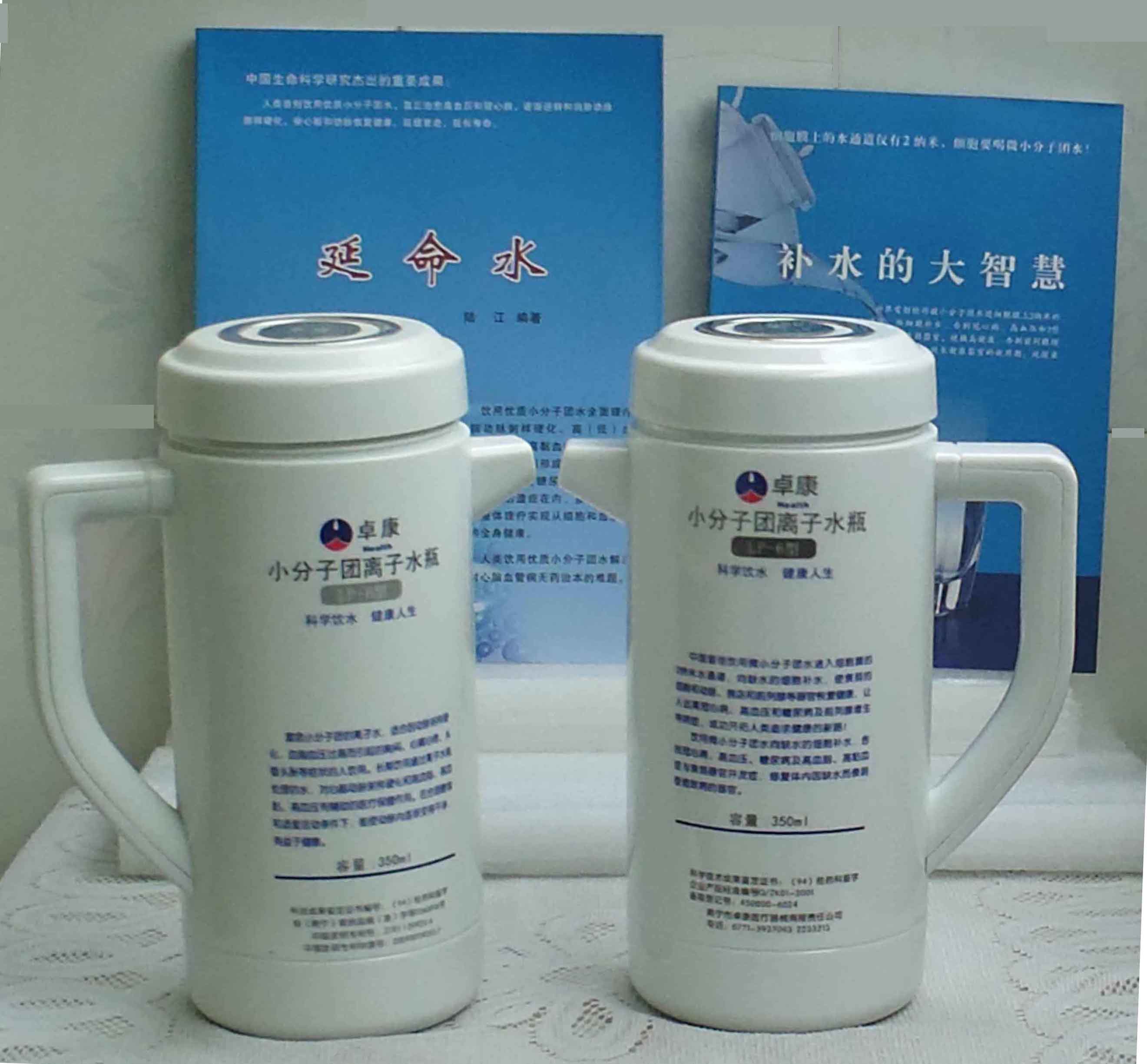 本品大量用戶的使用效果表明,能治愈冠心病、腦動脈硬化、原發(fā)性高(低)血壓、高血脂、高粘血癥、高血尿酸癥(痛風)和2型糖尿病、衰弱器官并發(fā)癥(前列腺增生、腎衰與尿毒癥)及中風后遺癥等療效好。產(chǎn)品配信譽卡。使用壽命30年,不換芯,易清洗。團購優(yōu)惠。從郵局匯款,匯費1%,地址按本頁下方地址、聯(lián)系人寫。從銀行匯款,請點擊[聯(lián)系匯款]欄,從工商銀行匯款,建設銀行、農(nóng)業(yè)銀行匯款,均免收匯費,匯款后20--30分鐘內(nèi)發(fā)短信,可用微信轉帳,均免匯費,微信號即手機號13768308380。匯款后,告知你的姓名和地址,我公司聯(lián)系人手機號是:13768308380卓康牌離子水瓶為我公司獨家生產(chǎn),郵購產(chǎn)品配《補水的大智慧》彩印書一本,另配四季出版社出版的新書《補水的大智慧》一本,并配光盤一張(含央視主持人釆訪陸江的對話視頻)。目前市場和"淘寶網(wǎng)"上有人兜售假冒的偽品,望讀者審察辯別真?zhèn)危旒僬哓飧`假冒本公司的各種證、獲獎獎項、專利號和外包裝盒上的中英文字,包括科技成果的鑒定意見等,請讀者注意防偽。如何識別假貨?已經(jīng)買了假貨怎么辦?(請點擊[打假掠影][打假掠影])。